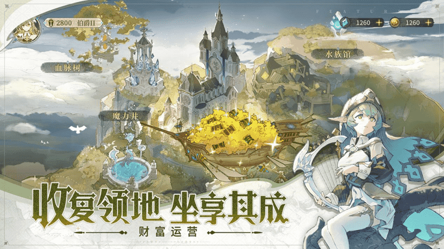 随着冒险推进,,,,你可以陆续解锁各大王国的资源地块,,这些地块将为家族庄园带来源源不断的资源助力,,,,帮助家族团队升阶成长。。。据说,,,,某些地块还是绝佳的钓鱼消遣据点......